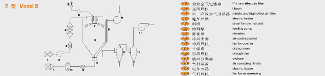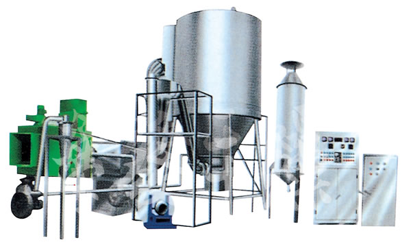 該機(jī)采用全封閉形式,所有部件均采用不銹鋼制造,配有三級(jí)凈化裝置,過(guò)濾后的空氣達(dá)十萬(wàn)級(jí)要求。筒體與頂部裝有冷壁裝置,使壁溫<80℃,干燥塔內(nèi)裝有氣刷掃塔裝置。經(jīng)該機(jī)干燥后的中藥浸膏粉,不會(huì)出現(xiàn)焦化變質(zhì)現(xiàn)象,大大增加了收粉率(95%以上),而且不會(huì)產(chǎn)生混藥現(xiàn)象和粘壁現(xiàn)象。