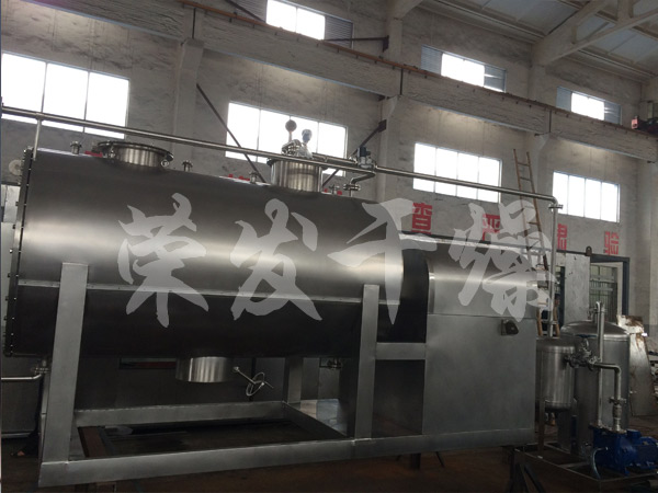 變性淀粉真空干燥機(jī)是一種新穎臥式間歇式真空干燥設(shè)備,濕物料經(jīng)傳導(dǎo)蒸發(fā),帶有刮板攪拌器不斷清除熱面上的物料,并在容器內(nèi)推移形成循環(huán)流,水份蒸發(fā)后由真空泵抽出。